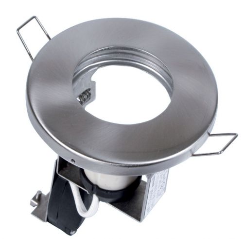Edelstahl-Lampenfassung für Lampen mit 50 mm Durchmesser und GU10 Sockel . Geeignet für LED-Lampen und für Halogenlampen bis 35W (keine Energiesparlampen - Lampenhöhe ohne Kontakte max. 50mm). Das Gehäuse ist aus SS304 Edelstahl und die Oberfläche ist gebürstet.