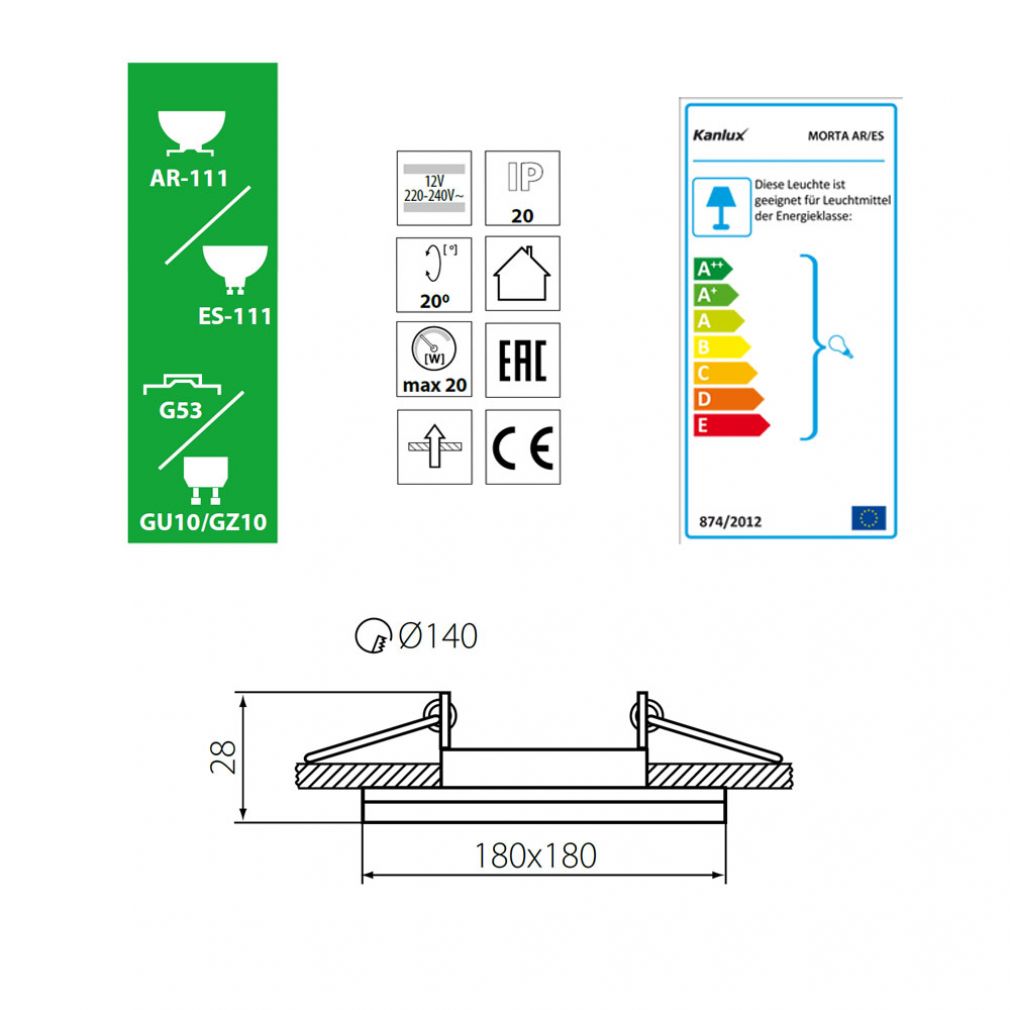 | Für Lampen mit Bauart: | GU10 und G53 - mit Ø 111mm |