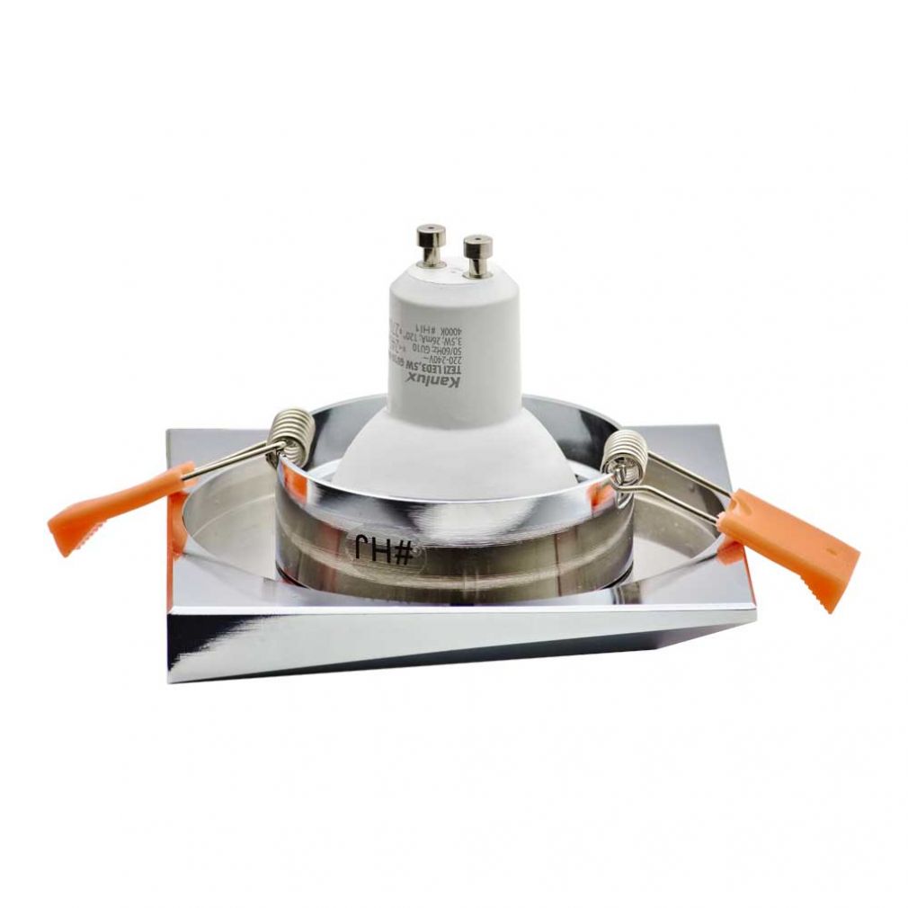 In diesen Einbau-Downlight können Sie jede Lampe der Bauart MR16 mit einem Durchmesser von 50mm einbauen. hierbei spielt es keine Rolle, ob das Leuchtmittel den Sockel GU10 oder GX5.3 hat. Weiterhin können Sie LED oder auch Halogenlampen bis max.35W einbauen.