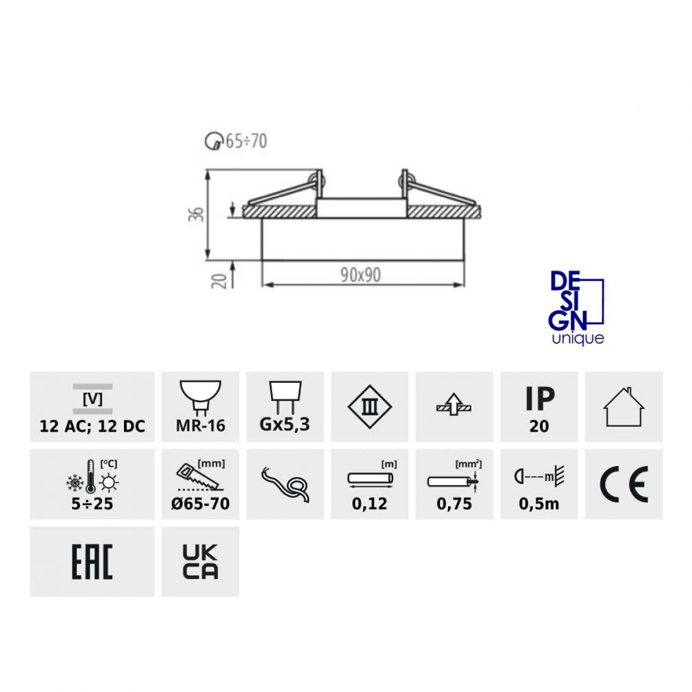 | Für Lampen mit Bauart: | MR-16 mit Ø 50mm |