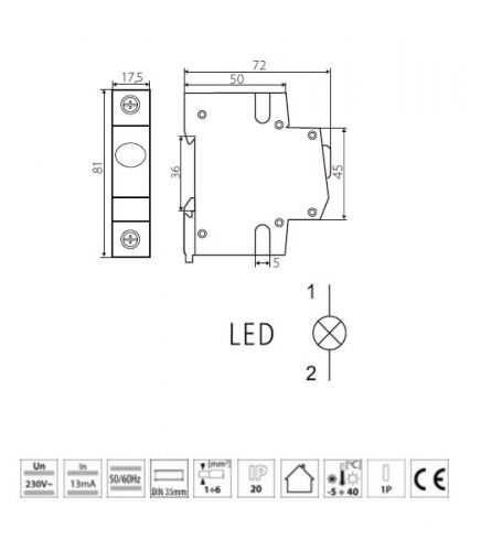 Diese LED Kontrolllampe zeigt den Status der Elektrokreise mit Licht an. Zum Einbau in Sicherungskasten / Verteiler.