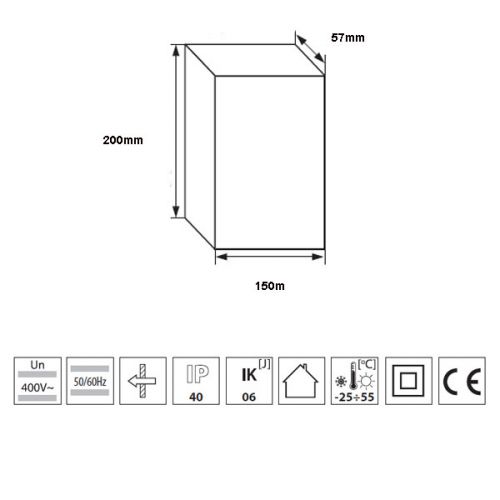 -die Hitzebeständigkeit beträgt für das Gehäuse 850°C und für die elektrische Austrüstung 650°C/30s -Farbe: weiß/braun -Gehäuse, Türchen: ABS-Werkstoff / Farbe: weiß/braun -Türchen werden nach oben geöffnet -zulässige Gehäusetemperatur max. 70°C -Schutzklasse IP 40 -Einbaumaße (Maueröffnung) LxBxT mm: 150x200x57